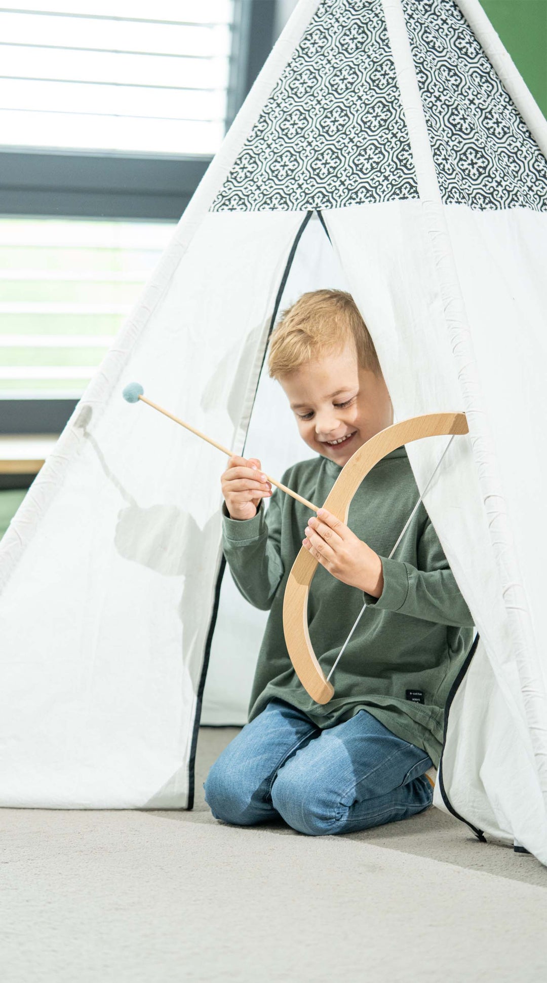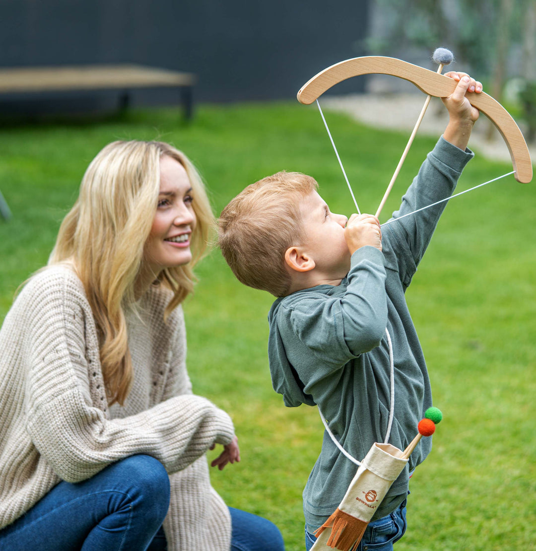 Unser authentischer Holzbogen ermöglicht Kindern ab 5 Jahren einen spielerischen Einstieg in die Welt des Bogensports und eignet sich durch die Zielführungshilfe im Bogen besonders gut für junge Abenteurer.