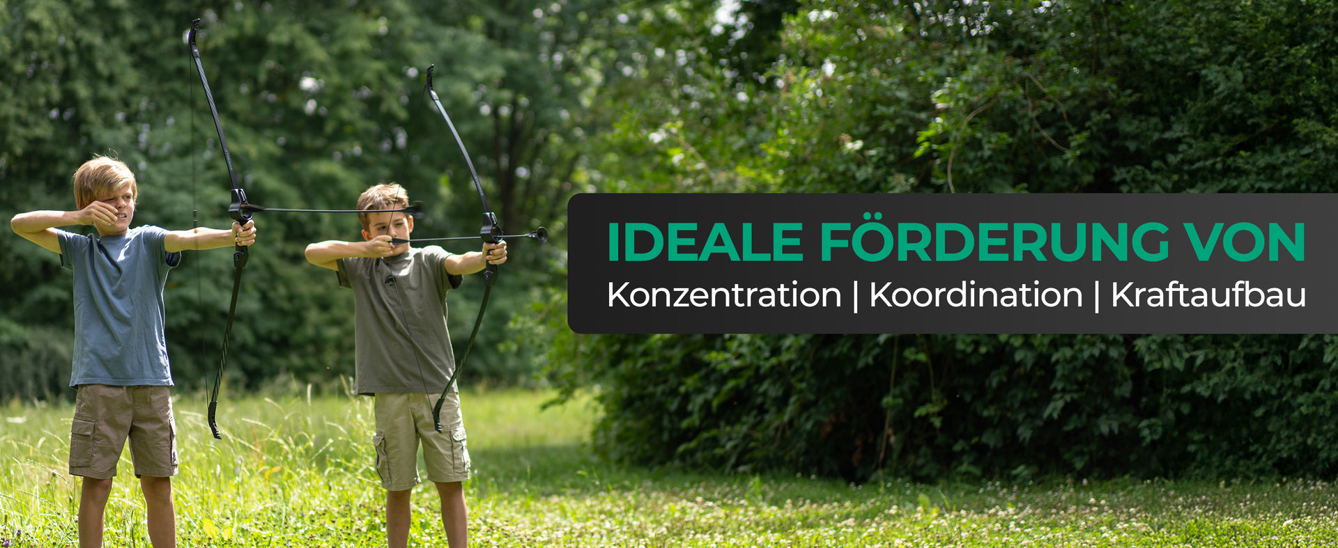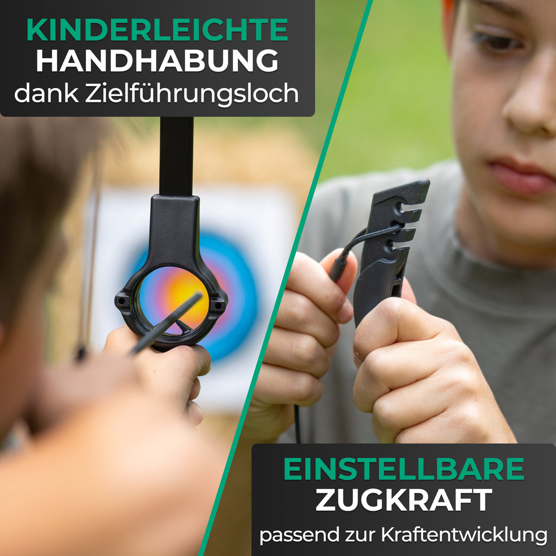 Sportbogen für Kinder mit Zielführung, inkl. 6 Carbon-Hybrid Pfeile und 3 Zielscheiben