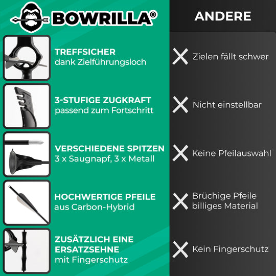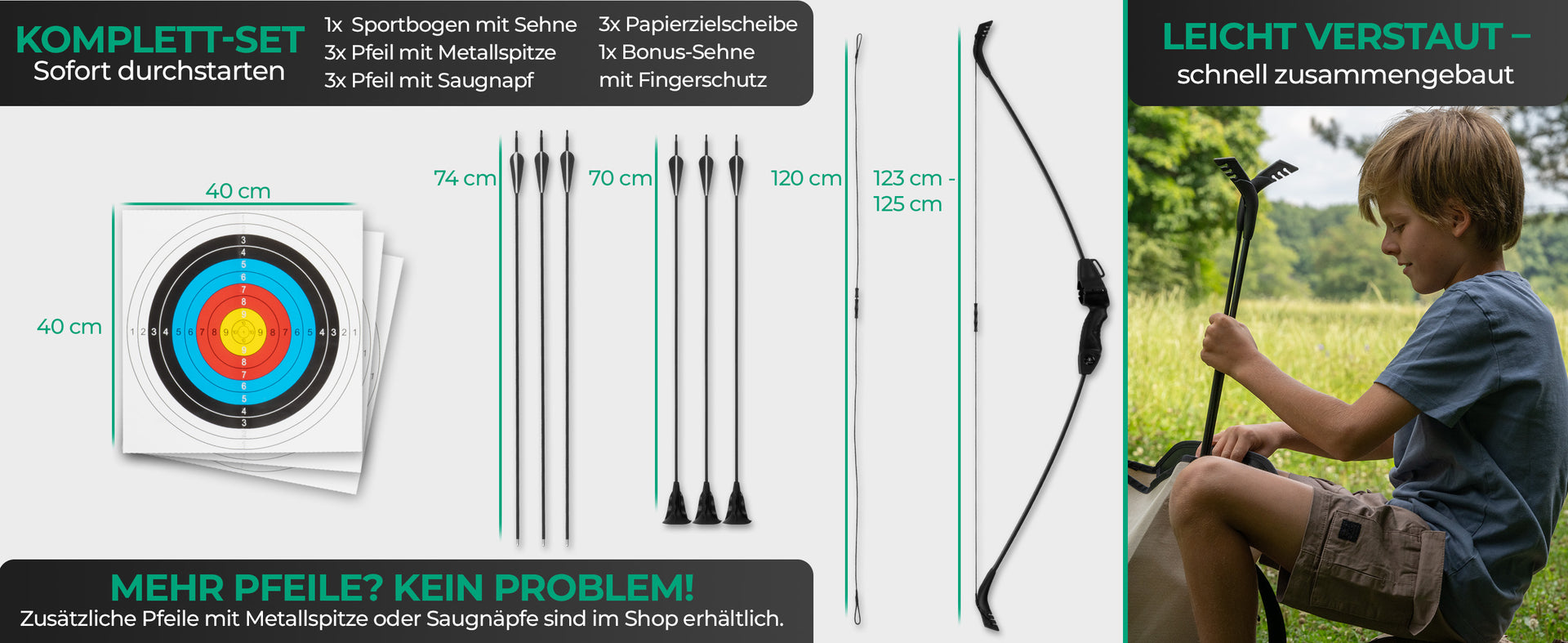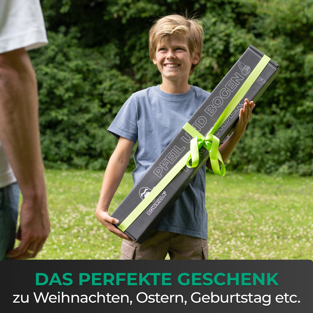 Bist du noch auf der Suche nach einem besonderen Geschenk? Dann ist dieses Sportbogen-Set für Einsteiger die ideale Wahl. Mit hochwertigen Materialien verschenkst du erstklassige Qualität und unvergessliche Momente mit Familie und Freunden. Der Bogen ist perfekt für ambitionierte Kinder und Jugendliche, die das Bogenschießen sicher und leicht erlernen wollen.